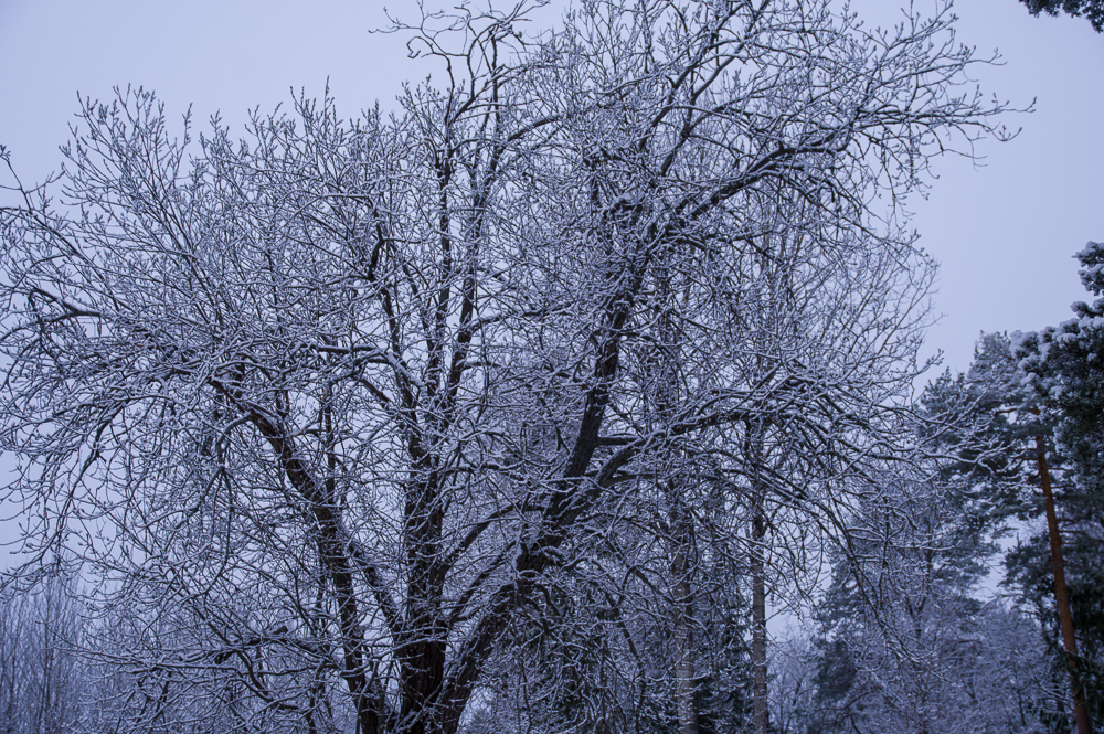 So, winter yet again and the willow tree’s buds are covered in wet snow. Wind and wet snow