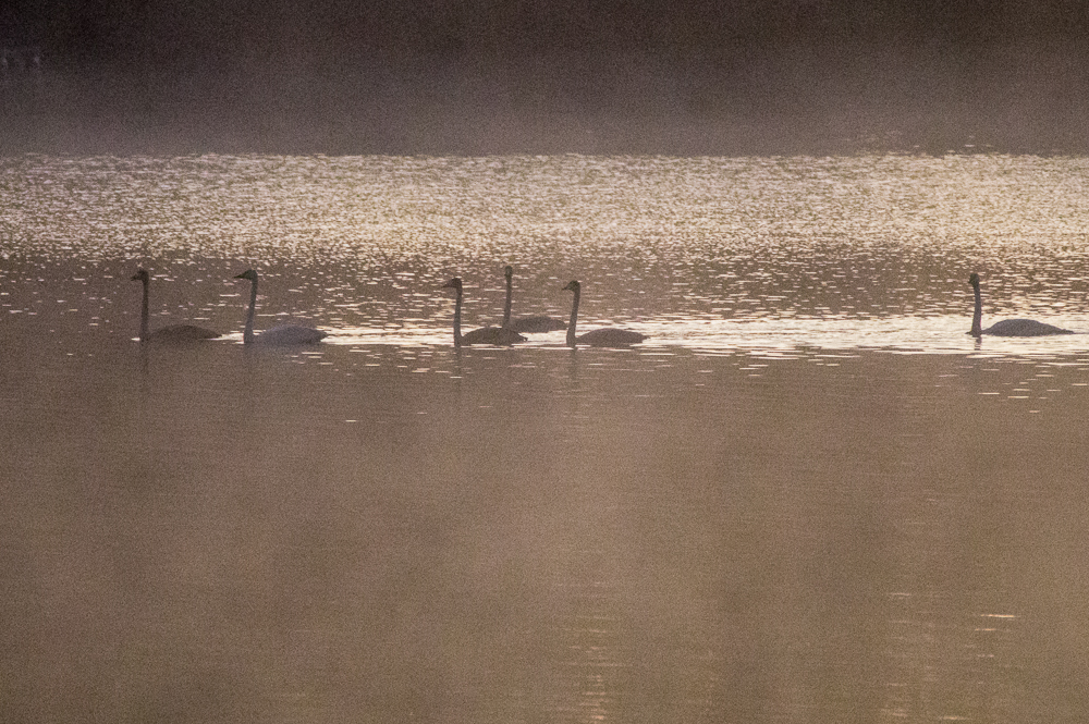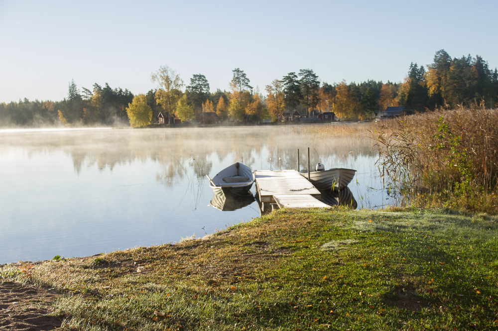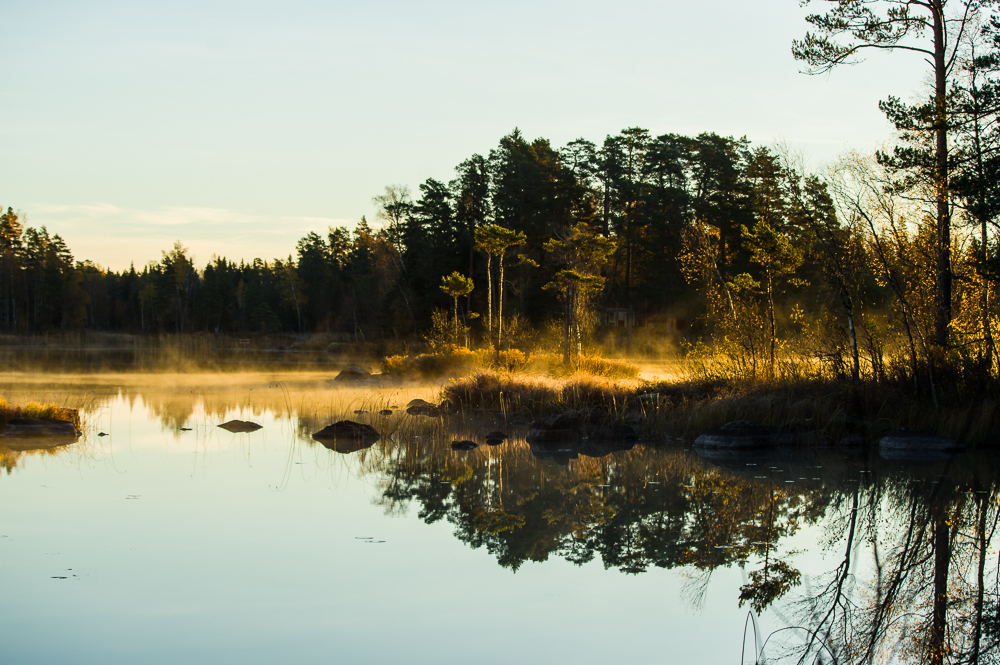 Kyliga morgnar kommer dimma och sjörök, fukten fastnar på grenar och nät. När solstrålarna äntligen bryter fram avslöjas gyllene vyer.