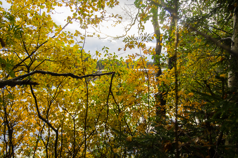 On cold mornings there is fog and sea smoke, the damp sticks on branches and webs. When sunshine finally breaks through golden views are revealed.