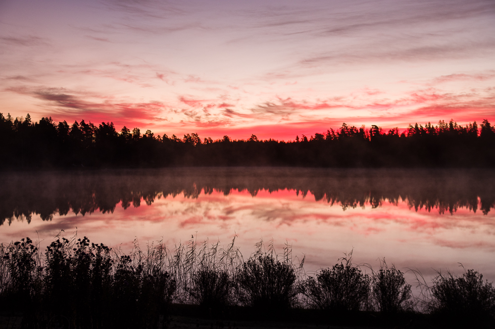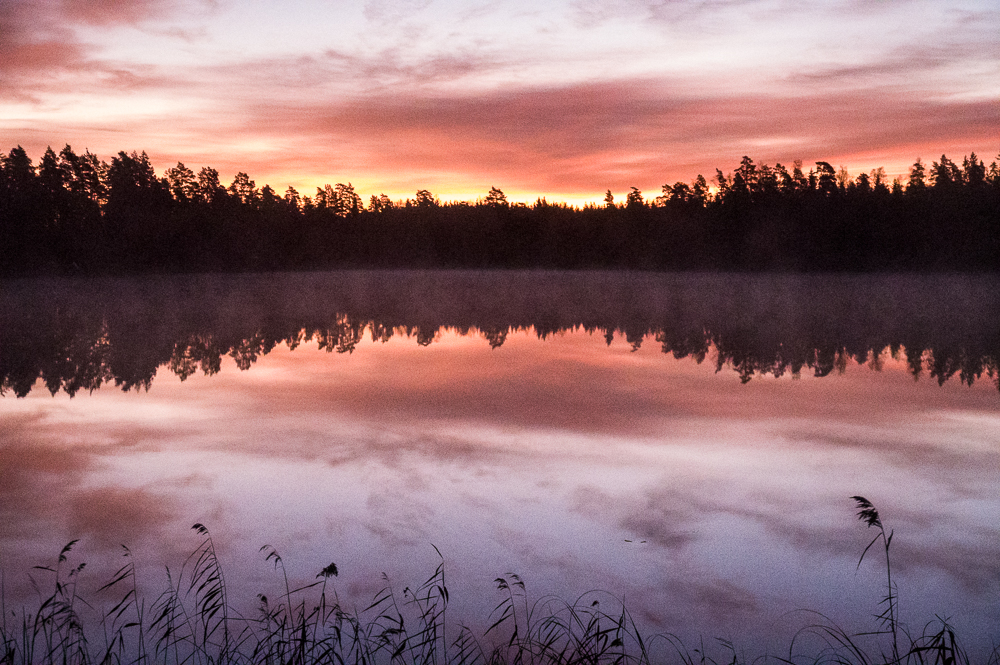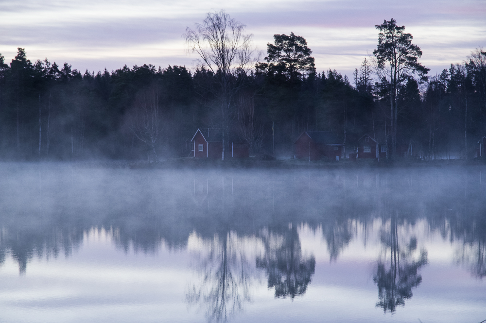 Nåja, innan isen lagt ut kristallerna kan vi fortfarande njuta av morgonvyer med sjörök och dimma. När väl dimman lättat och sjön är stilla möter vi ett bedårande landskap.