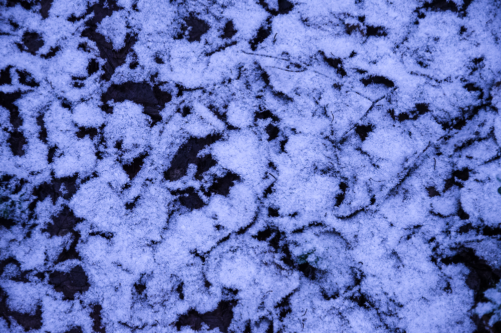 Mot slutet av månaden kommer snö och is och färgerna, även de bruna, byts mot blågrå. Mosaiken får ett täcke och syns mindre och mindre. Lingonen får frost och han, den imaginäre som spanar där ute -vad ser han?