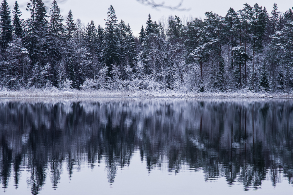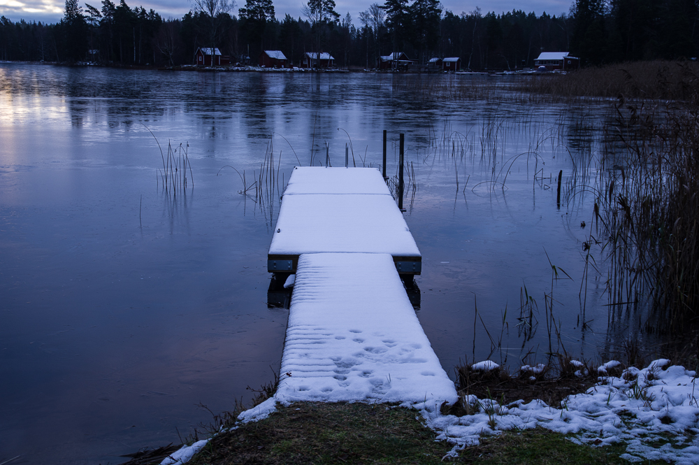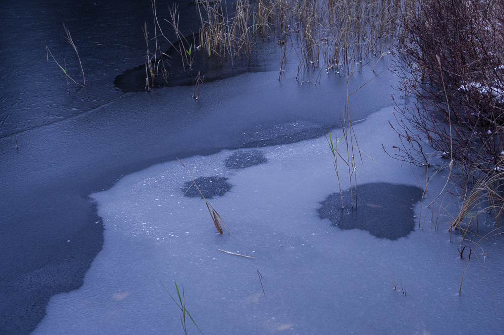 Nu är det dags för första isläggningen. Snabbt, över natten, får hela sjön en ny yta. Den kommer snart att försvinna men återkommer när vinterkylan tagit i. November är bara början på vintern.