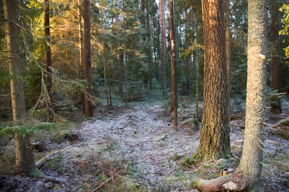 När temperaturen faller klara morgnar kommer stora guldpenseln fram. Omgivningen blir förändrad och nya mysterier kommer kravlande på träd och gren.