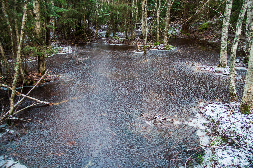 Where has winter gone? Snow falls but soon melts. Weather changes and fog comes. Afterwards the forest is flooded with water. Water that usually comes in spring. The prints of the bowtiemaker are sharp. These are new times!