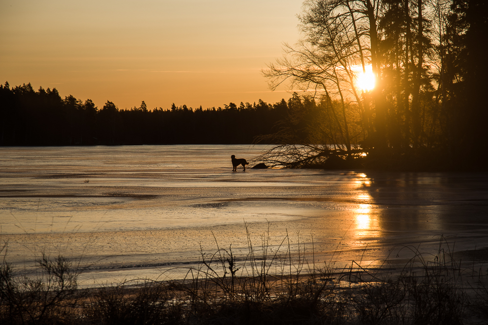När gråheten för ett ögonblick försvinner och snön tinat från isytan växer händelser och aktiviteter fram. Det är inte bara uttern som har bråttomspår på isen. Andra tycks också titta fram för att beskåda tillvaron.