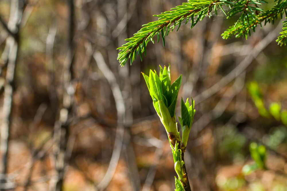 Rönnens blad börjar vecklas ut likt ett knytnävsslag och snart knoppas gran i kapp med lövsprickningen.