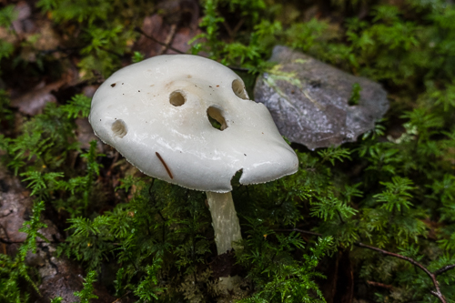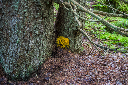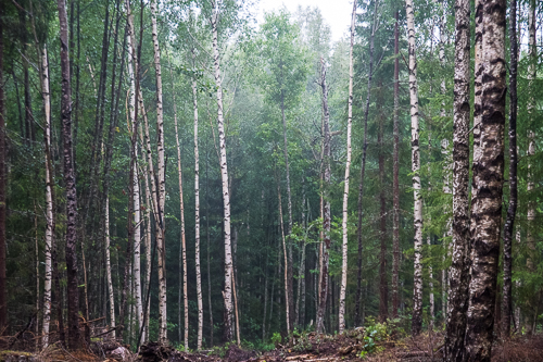 The rain almost hides the view. It takes a lot of water to satisfy the forest marshlands. Sometimes the light peaks through between the trees. One of those days the hermit recieves a welcomed visitor.