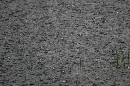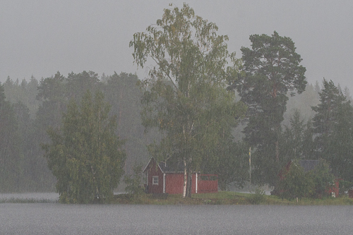 Det är fortfarande sommar och regnvädren avlöser varandra. Vattennivåer i sjö och skog når högre och högre. Regnet står som en vägg där dropparna hittar sjöns vattenyta. Den lilla bäcken brusar som en å.