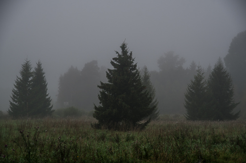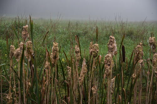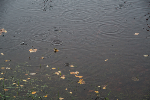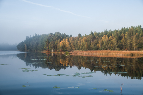 In the beginning of September the rain pours down, causing flooding. Roads are flooded, culverts are filled with water so that only a whirlwind can be seen. The surrounding landscape is of water. The heron benefits from this.