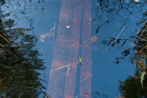 Time passes and eventually the sorrow and loss will wane, just as the crying of the bracket fungus will cease. The water slowly sinks, revealing the foot-bridge again.
