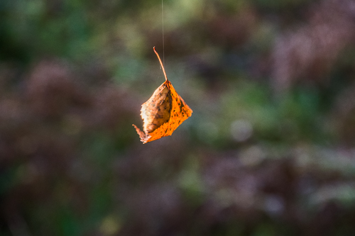Höstmosaiken läggs, inte lika dramatisk som vid frost. Och nog finner man förunderliga ting som lövet som hänger i en tunn tråd (är det för att kunna ångra sitt fall?) eller den imaginära som bär bort någon på sin rygg. Och vilka är det som skymtar på stjälkarna?