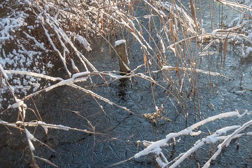…or a quick one. Strange ice patterns appear on the lake. Sometimes they are broken by waterdrops before the cold returns again. The flooded forest freezes.