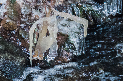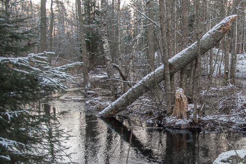 Now it’s winter for real. The ice organ plays by the stream and the spruce tree skirts dance along. Perhaps there is another audience?