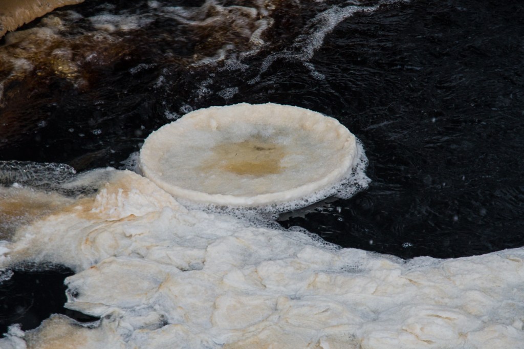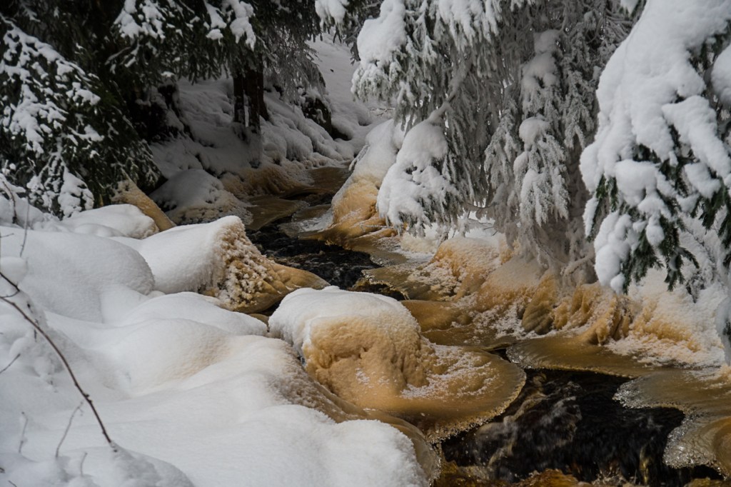 The cold is also present with some really cold nights. So cold, that the fir tree skirt has stopped dancing in the stream. Instead it is time for the ice plates to take form.