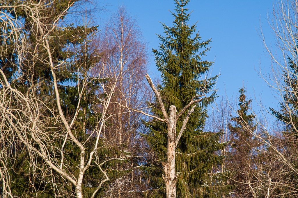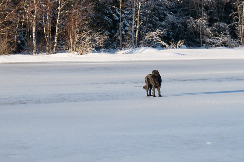 Nu har fröken Flinga och jag tröttnat på den myckna snön som gör det omöjligt att ströva i skogen. Vi letar tecken på förändring men det gråa tynger mer och solen hindras att tränga igenom.
