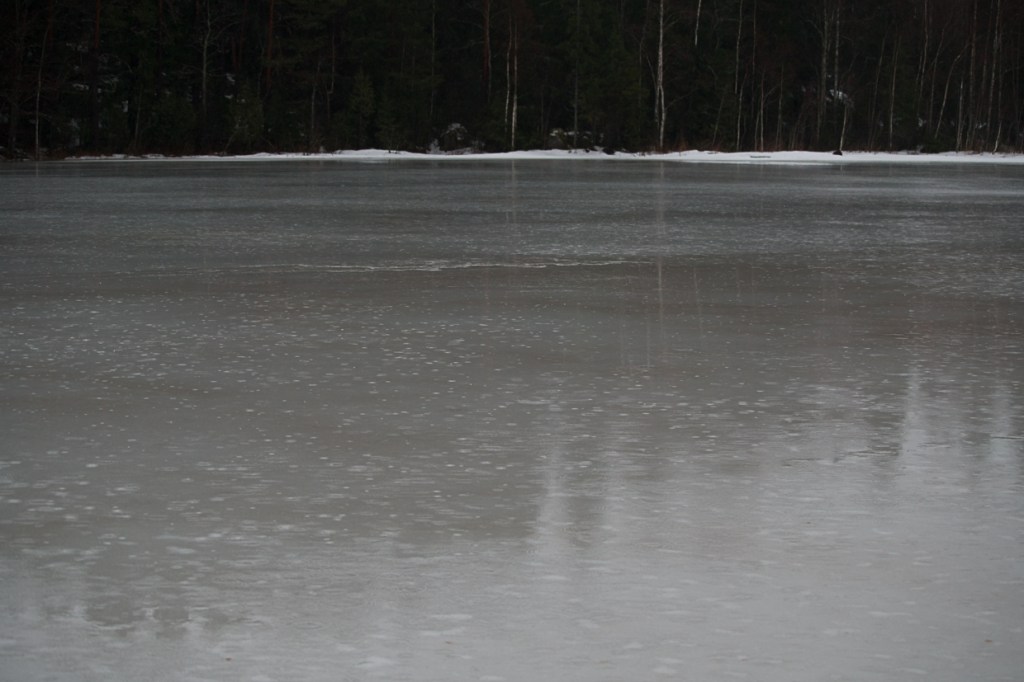 Kan den var där, vid den glittriga isen? Nåja handtagen består än så länge när februarikvällen sänker sej och temperaturen faller.