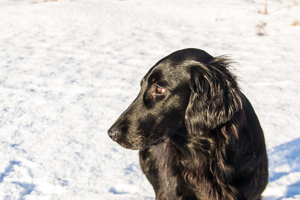 Miss Flake and I are tired of the amount of snow, making it impossible to walk in the forest. We search for signs of change, but the grey is heavy and the sun is stopped from breaking through.