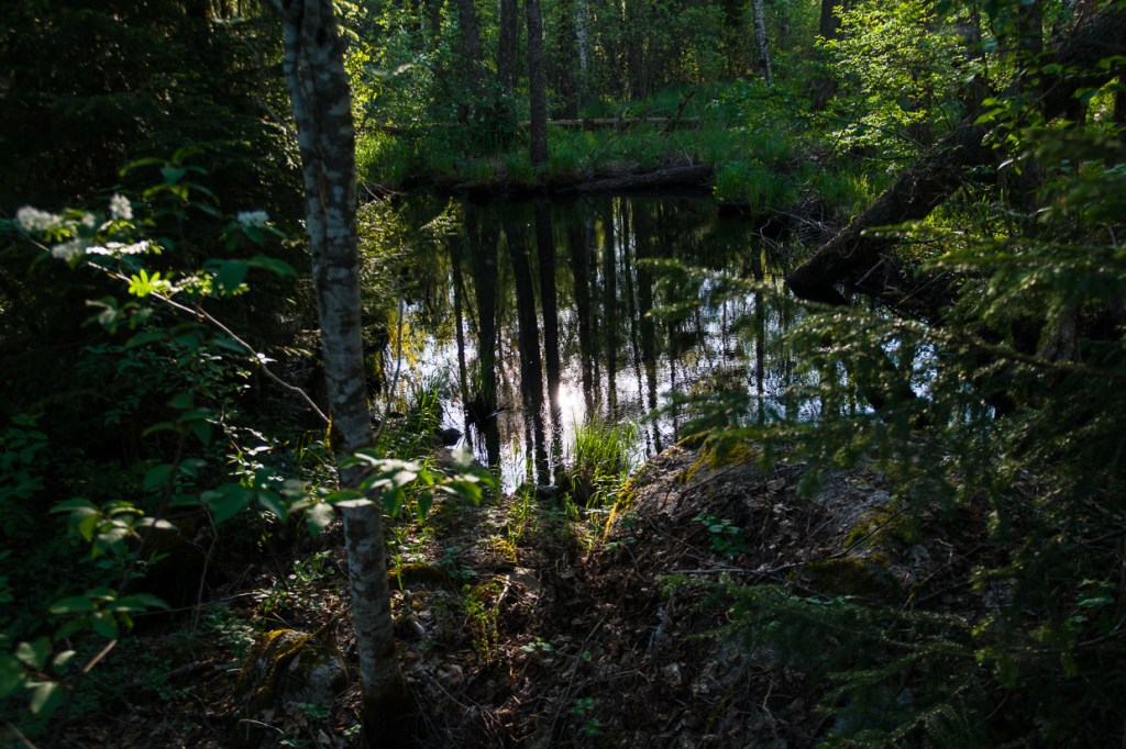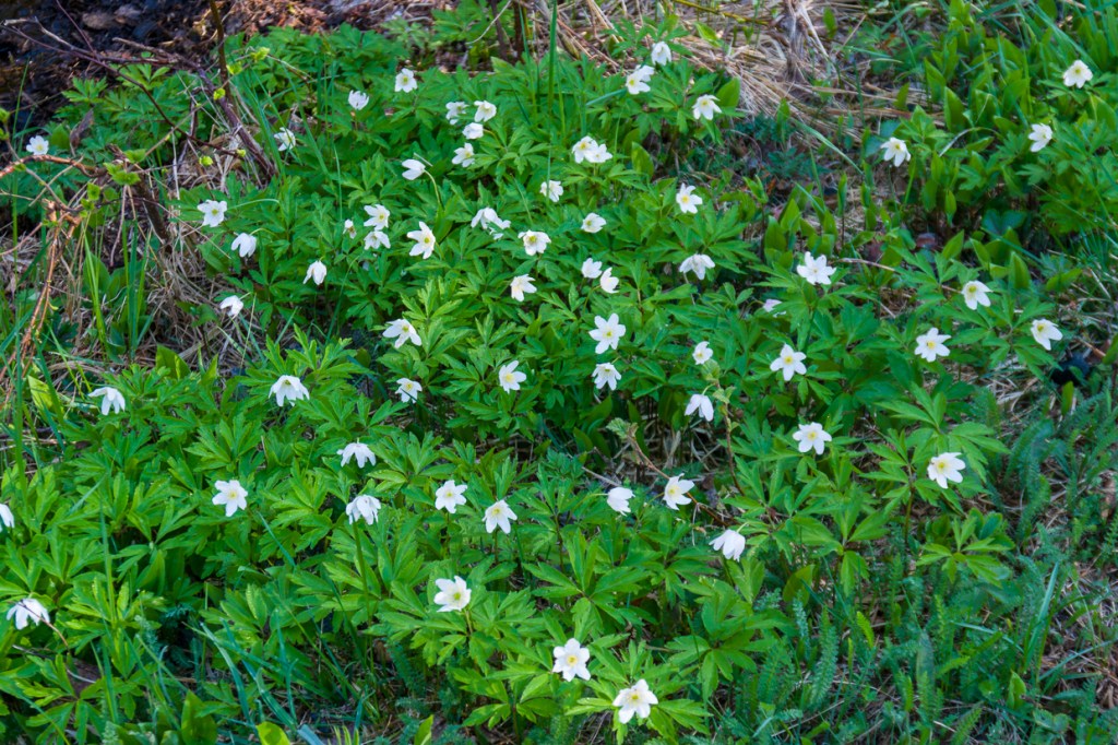 With the heat comes a surplus of pollen and flowers. It is as if the pollen prints in the water affect other things. The wood anemones that are a little bit cold in the morning soon expose themselves. More and more is blossoming. The sweet gale has leaves and the blooming of the mezereum reaches its peak.