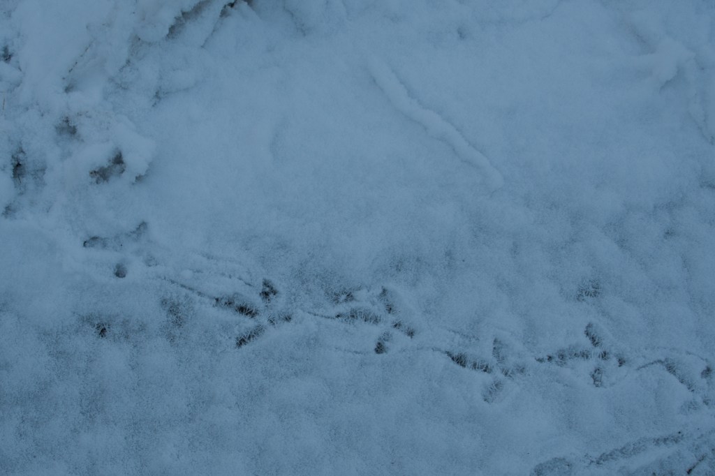 In the evening the sky is burning and the following day winter has returned. The snow reveals the walk of the lynx and the capercaillie’s visit to the road.