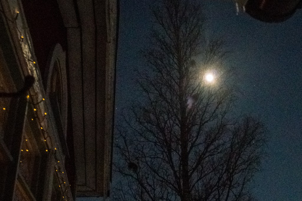 Även annat kan lysa på januaridagen. Eremitens boning ser ut att trivas i solen.