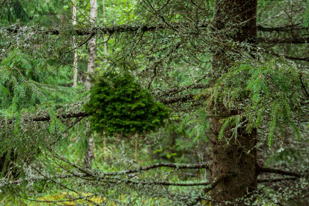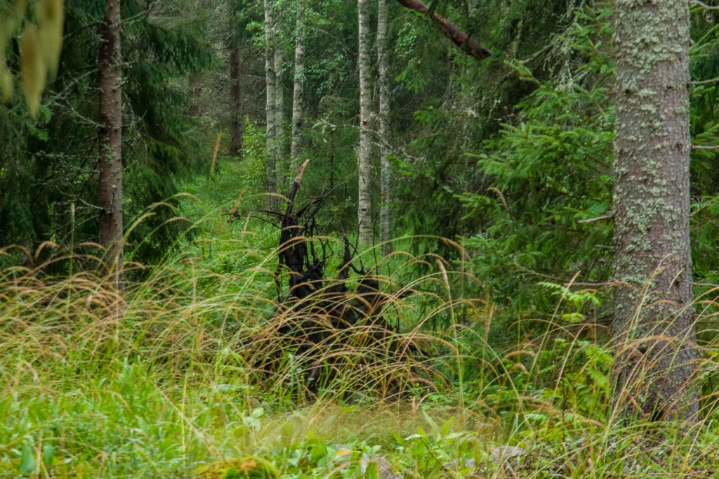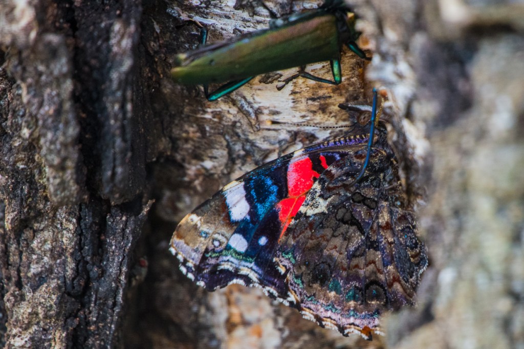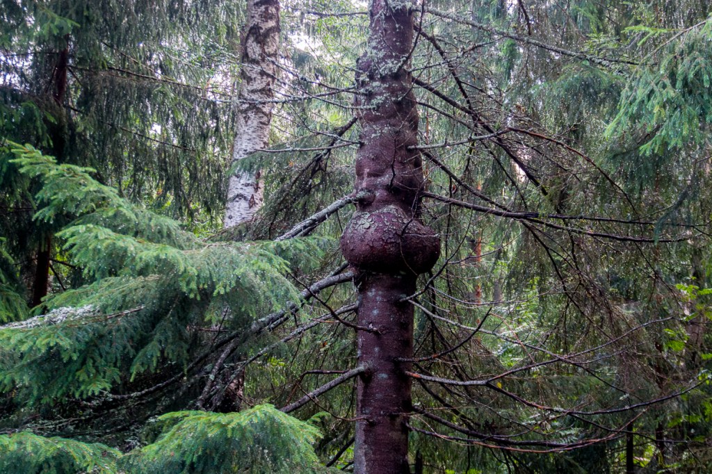 August quickly passes by. The heat of summer still remains and the imagination of the hermit is smaller by the day… But surely strange things are shown – a butterfly dressed in tree bark and with company at that, and who expects an Admiral in the woods? The pregnant spruce tree – or was it a totem pole – or is it perhaps the imaginary ones ghosting?