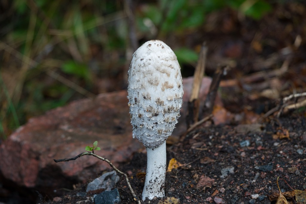Suddenly one lonely cormorant is seen moving south, while the shaggy ink cap steadily rises and reflects in the forrest lake