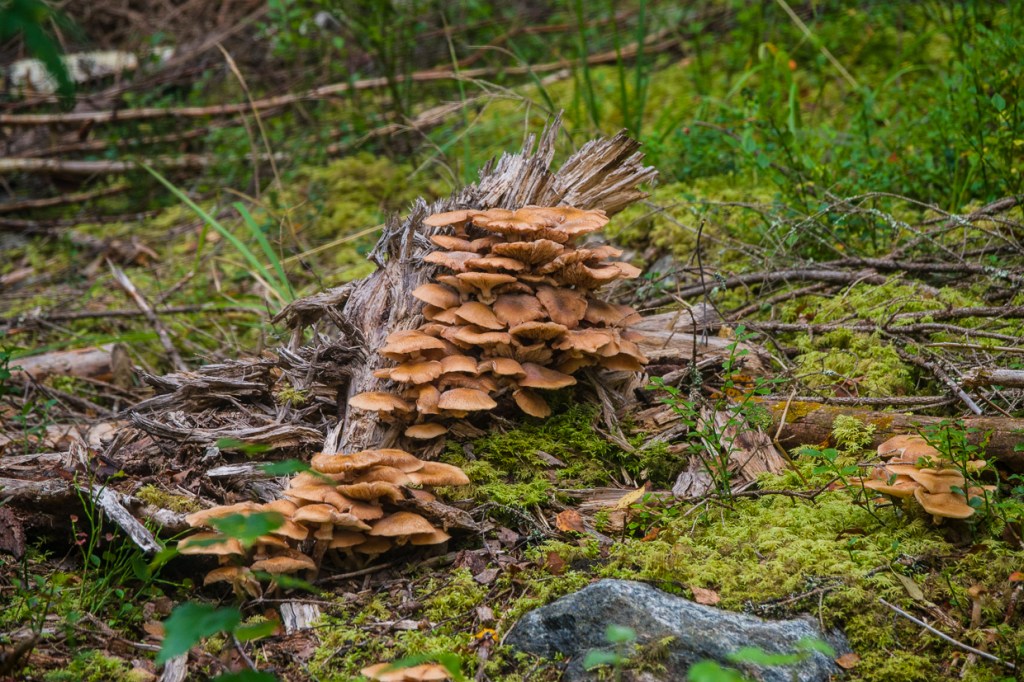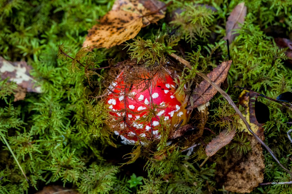 The abundance of mushrooms is wondrous. Is that the imaginary ones in disguise? On a tree stump we find another creature, is this place haunted?